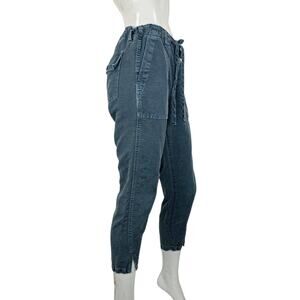 AMO size 26 Navy Twist Drawstring Pants ankle slip crop linen cotton