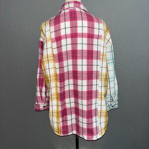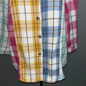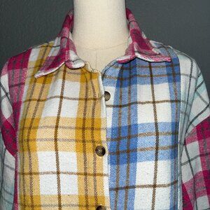 AMOLI Multi-Color Block Plaid Flannel Shirt Shacket - Oversized - Women's Small