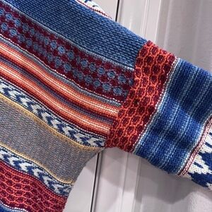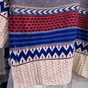 AMOR BOHO BLUE CREAM ORANGE RUST COVER-UP SWEATER BOHEMIAN RETRO EARTH TONES OS
