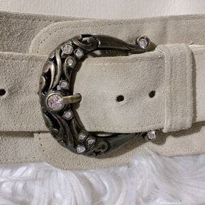 Size small AMORE MIO suede belt goldtone hardware with rhinestones/crystals