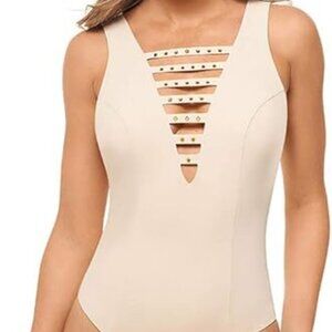 AMORESSA Romancing Stone Veracruz Studded Plunging Neckline One Piece Swimsuit