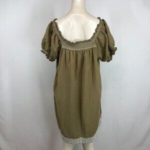 AMOUR VERT- WOMEN'S XL - OLIVE SHORT SLEEVE BOAT NECK LINEN BLEND BOHO DRESS