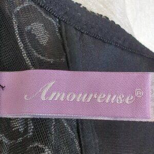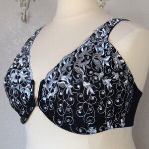 AMOUREUSE Bra 42DD Black White Embroidered Front-Close Underwire Lightly Lined