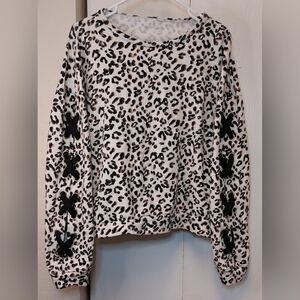 AMP Cheetah Print Sweatshirt Lace Up Sleeves Size XL Fleece Top