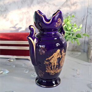 AMPHORA COBALT BLUE MADE IN ENGLAND AND HAND EMBELLISHED IN LIMOGES FRANCE