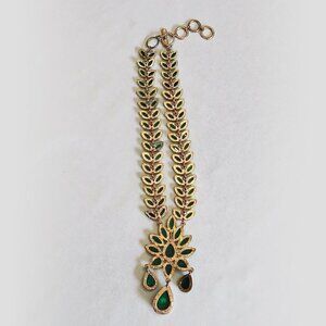 The Hamptons Dune necklace delivers sparkling sophistication - this dazzling goldtone necklace features stations of two symmetrical, faceted, marquise-shaped beads in bezel-style settings. At the center is an arrangement of faceted, marquise- and teardrop-shaped beads. Dangling below are three faceted, teardrop beads in bezel-style settings. The pear-shaped resin stones are set in 18k yellow gold plated over brass.