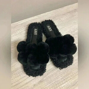 AMS fuzzy black sandals Size 7.5 Good pre owned condition Will bundle items