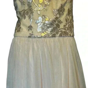 AMSALE Dress 14 Sequin Embellished Maxi Halter Neck Tulle A-Line Cocktail Beige
