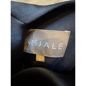 AMSALE Fluid Satin Draped Neck Dress French Blue Size 6 $595.00