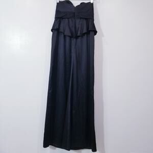 AMSALE Satin Peplum Strapless Long Gown Evening Dress