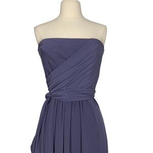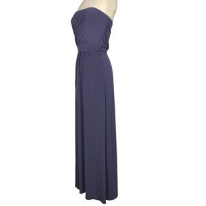 Amsale. French blue maxi dress. Sleeveless, waist tie, bodice detail. 92% polyester, 8% elastane.