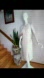 The figure-flattering shape of this crepe sheath tapers at the top to a high halter neck and splits at the hem in an off-center slit. A zipper on the sheer illusion back is concealed by a trail of faux covered buttons for a feminine finish.