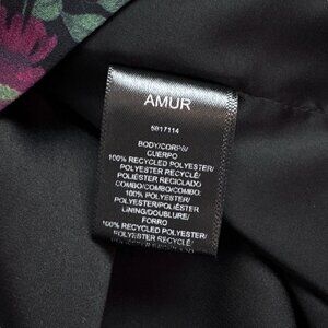 AMUR $598 Floral Peplum Asymmetric Ruffle Cocktail Midi Dress Gown Black Size 2