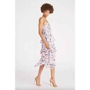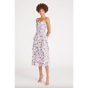 tags: designer, revolve, shopbop, formal, spring, summer, garden, floral, flowers, midi, maxi, tiered, ruffle, ruffled, cocktail, party, wedding guest, feminine, romantic, conservative, pastel