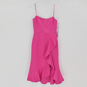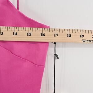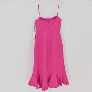 AMUR Ashley Dress Size 2 Linen Pink Satin Ruffle Wedding Guest Feminine Romantic