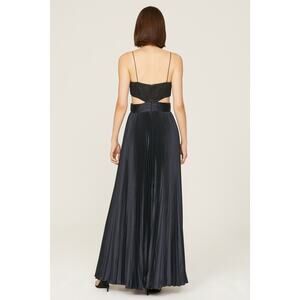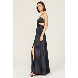 AMUR Black Satin Pleated Bustier Rib Cut-Outs Elodie A-Line Gown Size 4
