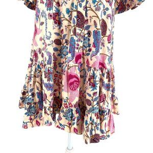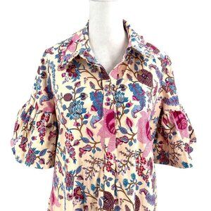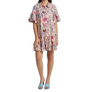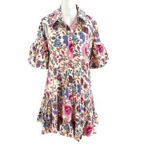 AMUR Botanical Floral Drop Waist Tiered Ruffle Mini Shirtdress Dress size 4