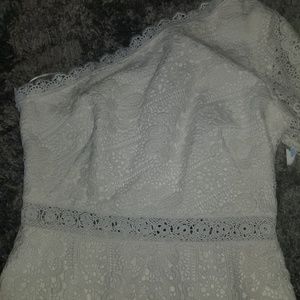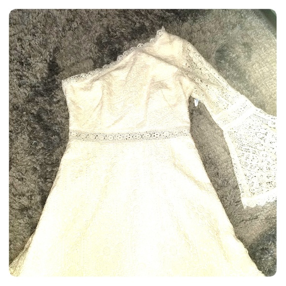Worn only once no stains smoke free,one shoulder Boho lace kaityln dress is styled with a flared bell ,sleeve and trim detail.