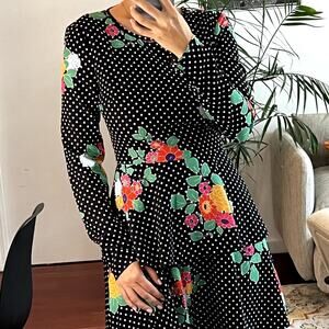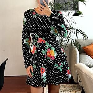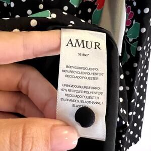 AMUR Dalilah Tier mini Dress in Black White Polka Dot Floral size 0