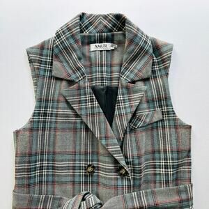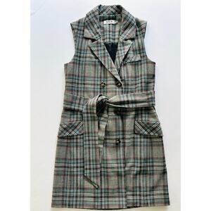 AMUR Dalton Vest Dress Size Small Grey Tartan Plaid Belted Convertible