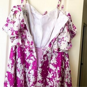 AMUR Dress Off-The-Shoulder Popover Waist Floral Silk Flowy Midi Magenta 4 NWT