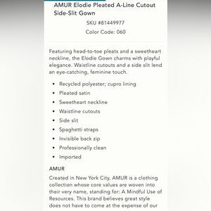 AMUR Elodie Pleated A-Line Cutout Side-Slit Gown/ size 2