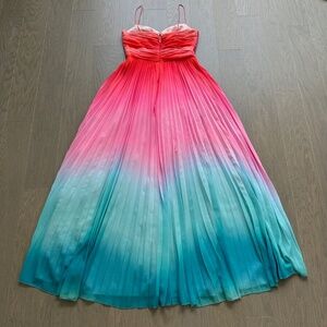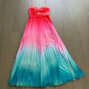 AMUR Emmett pleated pink blue ombre maxi dress.