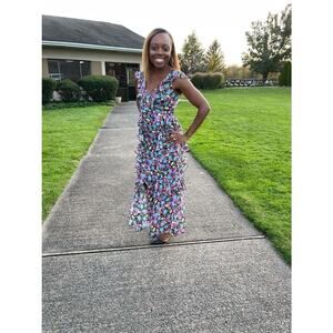 AMUR Evita Maxi Black Anemone Floral Long Maxi Dress 100% Silk Gown Size 12