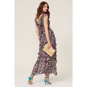 AMUR Evita Maxi Dress in Black Anemone Floral is a stunning, floor-length gown crafted entirely from luxurious 100% silk. This elegant piece features a captivating black backdrop adorned with delicate anemone floral prints, adding a touch of romantic charm. Designed to flatter, the dress is tailored in a size 12, ensuring a graceful and sophisticated fit. The maxi length accentuates the flowy nature of the silk fabric, creating an ethereal silhouette perfect for any formal occasion