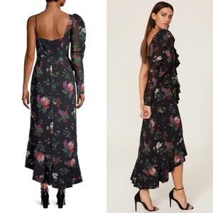 AMUR Floral Chiffon One Shoulder Puff Long Sleeve Ruffle Asymmetric Hem Dress 8