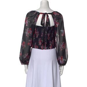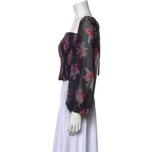 Featuring a square neckline, long sheer sleeves, a cropped silhouette, and an allover floral print. Square neck. Long balloon sleeves with elasticized cuffs. Smocked back panel for comfortable fit. Lightweight chiffon construction. Fits true to size