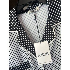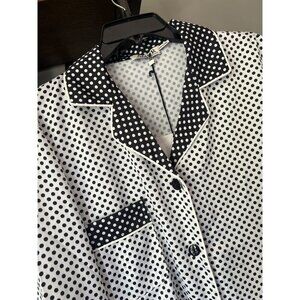 AMUR Gianna Polka Dot Button Down Shirt White Black Combo Womens Size XS