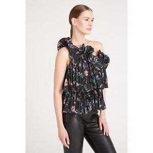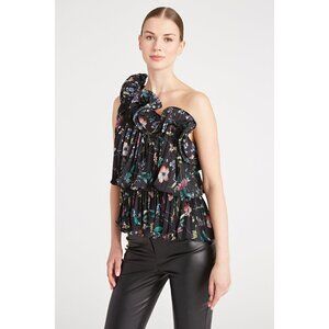 AMUR Isador Asymmetrical Ruffle Top Black Dreamy Wildflower Womens Size 14