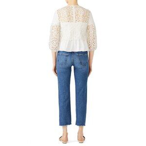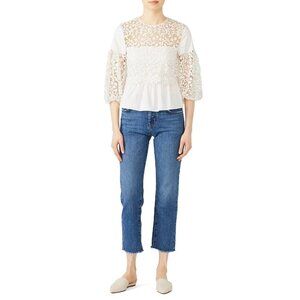 Openwork crochet lace adds a romantic element to this AMUR puff-sleeve top that dresses up everyday style. Featuring delicate floral lace with organic cotton poplin, the Mona top is a versatile piece that can take you easily from desk to dinner.