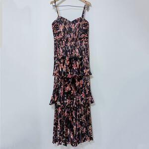 AMUR Londyn Pleated Tiered Maxi Dress Black Floral Size 8 Women's Preowned