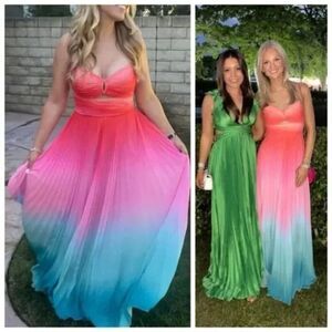 AMUR Maxi Gown Dress Pink Blue Emmett Pleated Ombre Gradient Sleeveless size 6