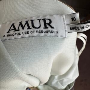 Elegant one-shoulder mini dress by AMUR. Features a blend of green and cream hues. Perfect for a chic evening look.