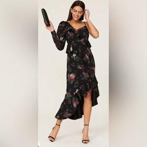 Black floral chiffon hourglass dress.