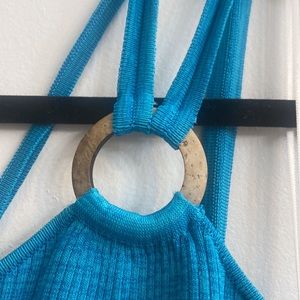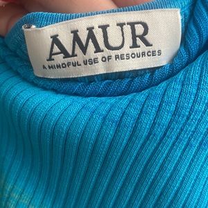AMUR blue striped ribbed dress. Perfect condition, never been worn. Midi length. I am 5’8” and it hits right above my knees. Very stretchy.