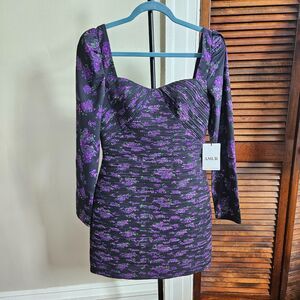 AMUR Size 2 Mini Long Sleeve Dress Purple and Black Floral