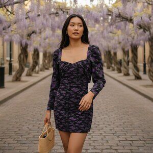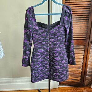 AMUR Size 2 Mini Long Sleeve Dress with Purple and Black Florals
