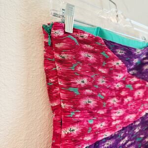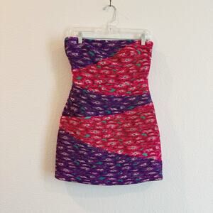 AMUR Strapless Ruched Floral Mini Dress Purple Red Eco-Friendly Size Unknown (Fits S)
