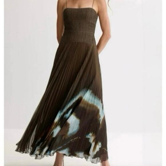AMUR Sue Pleated Gown tie diy green spaghetti streps Size 2