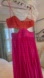 Elegant pleated dress in vibrant orange and pink. Ideal for standout Amur Elodie dress size 4
