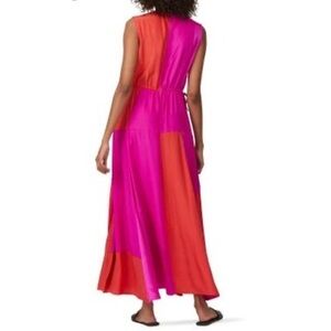 AMUR Women's Orange Pink Colorblock 100% Silk Lotta Ruched Maxi Dress Size 6