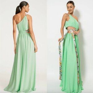 AMUR Zela One Shoulder Tie Waist Gown Fresh Mint Womens Size 0