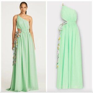 AMUR Zela One Shoulder Tie Waist Gown Fresh Mint Womens Size 2