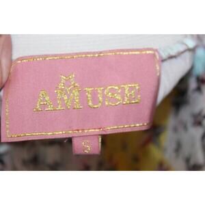 Women's skirt by AMUSE. Size S Small. Multi colored floral and star print, ruffled, elastic waist. This is the Zen skirt, Retails for 425.00. Sold out in this size. 100% polyester, machine wash gentle cycle. Designed in France. Good condition, no stains, holes or pilling.