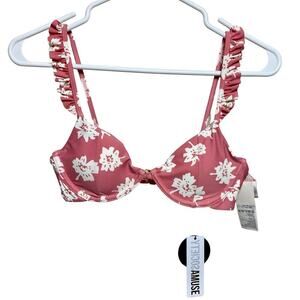 AMUSE SOCIETY Bikini Top Harlow Underwire Rose Pink White Floral Ruffle NEW S