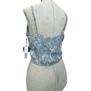 AMUSE SOCIETY Crop Cami Tank Sz L Spaghetti Strap Floral Paisley Button Crop Top
